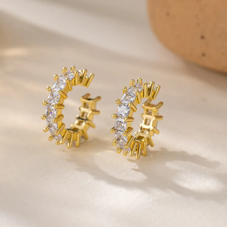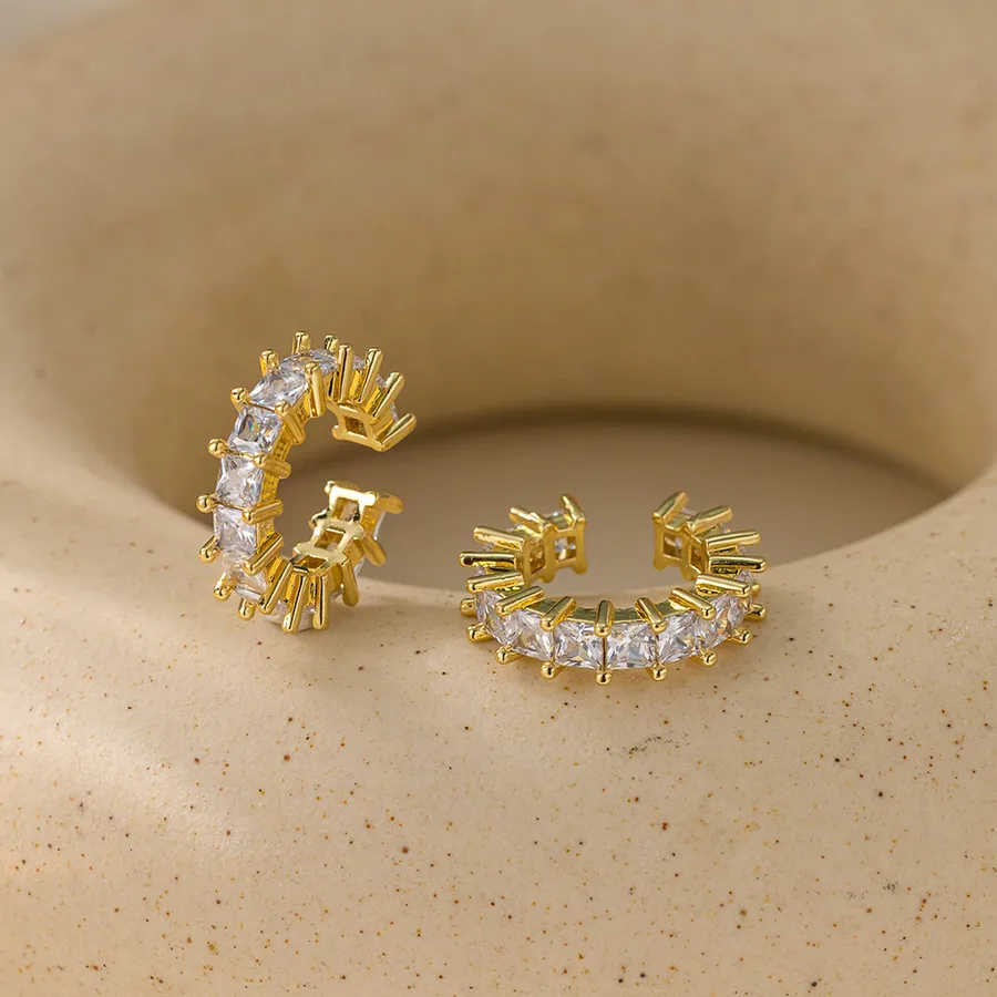Geometric Ear Cuffs For Women in Copper with Zircon Inlay, Available in Golden