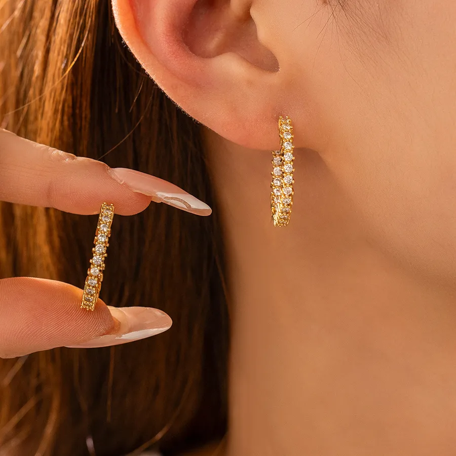 Geometric Ear Cuffs for Women in Golden Color with Zircon Inlay