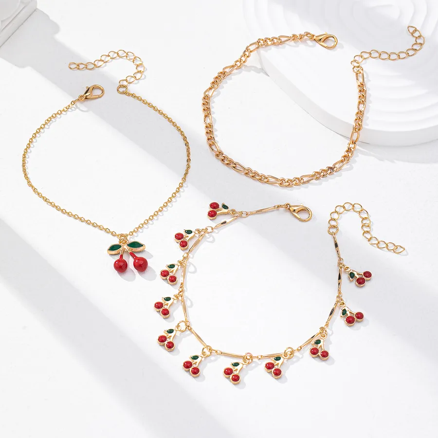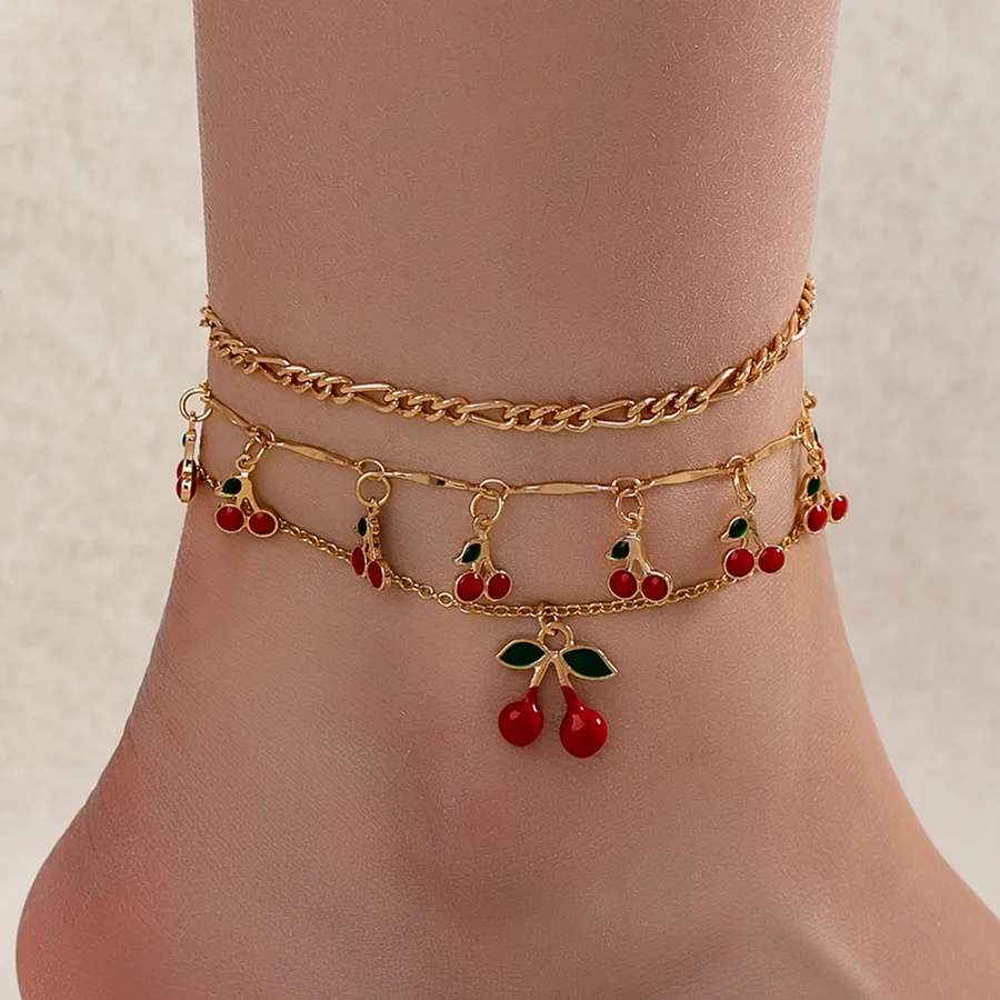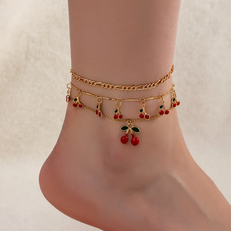 Home » Shop » Gold Plated Women’s Metal Anklet Featuring Cherry Pattern with Electroplating and Golden Plated Finish