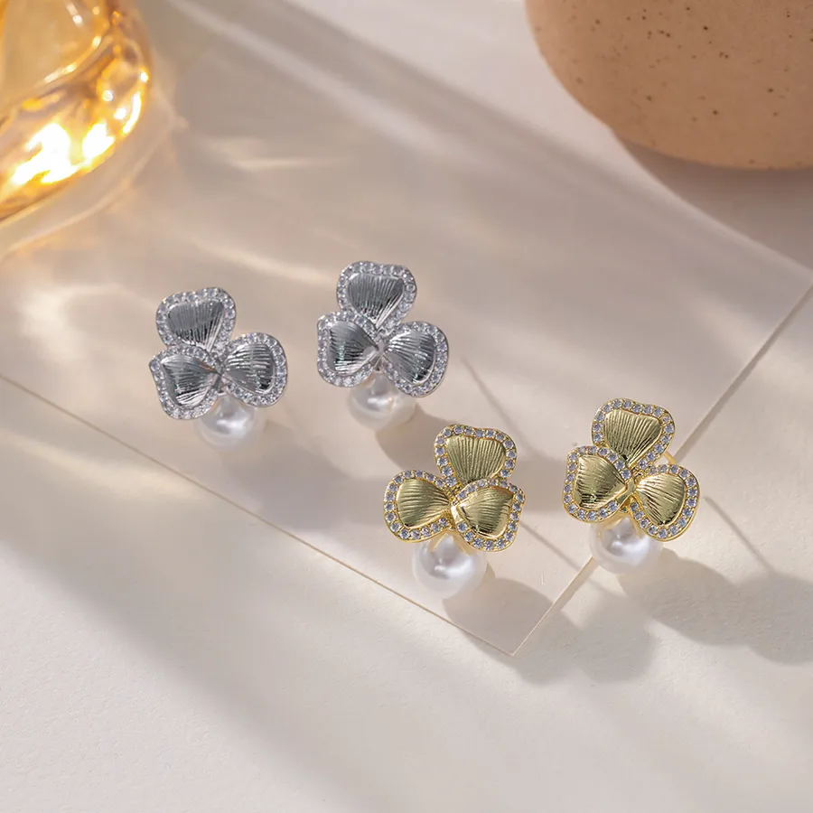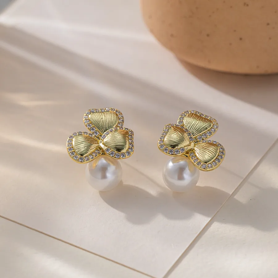 Home » Shop » Retro Flowers Stud Earrings for Women in Copper with Pearl Inlay