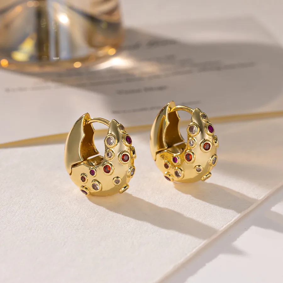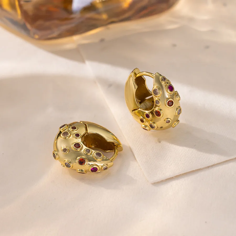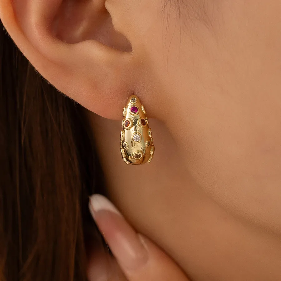 Retro Water Droplets Earrings for Women in Copper with 18K Real Gold Plated Finish and Rhinestone Inlay