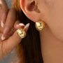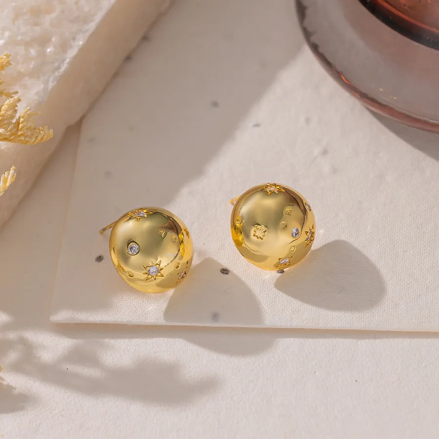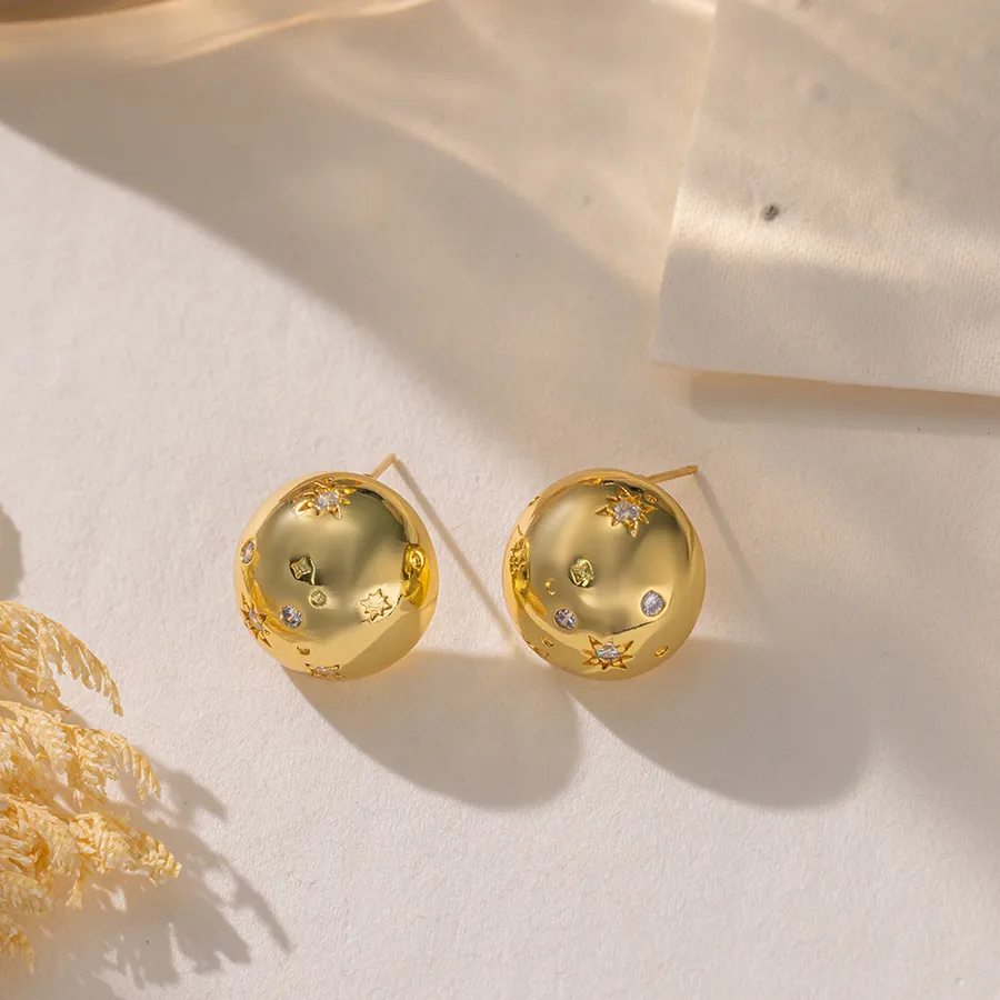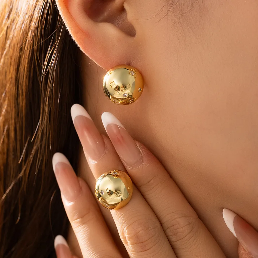 Round Maillard Style Stud Earrings for Women with Rhinestones in Golden
