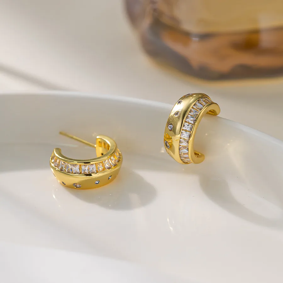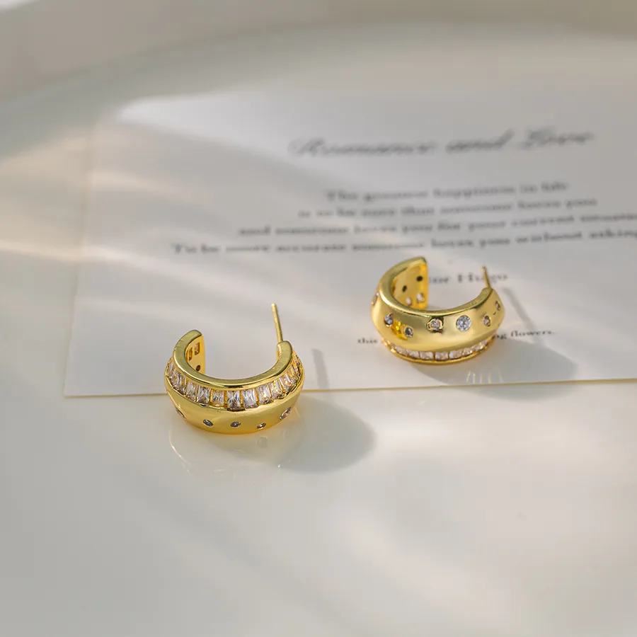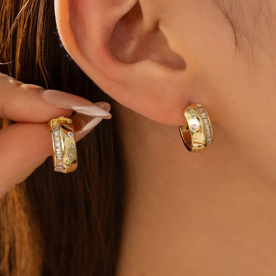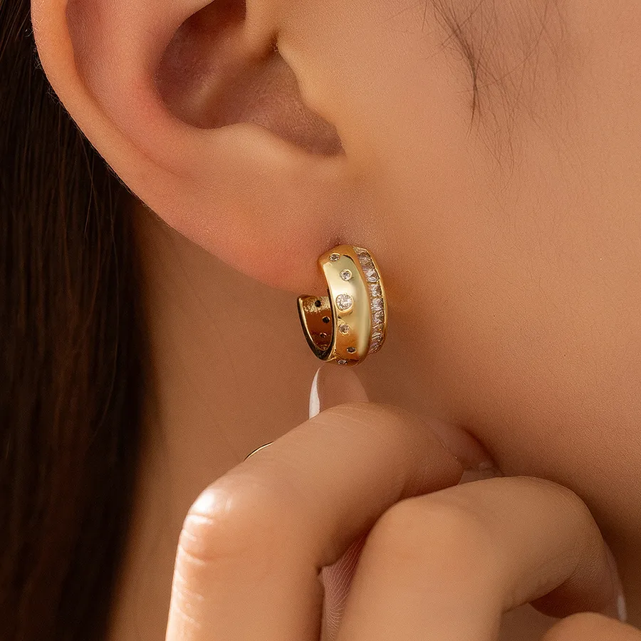 Home » Shop » Round Stud Earrings for Women Featuring Zircon Inlay and Electroplated Copper Material