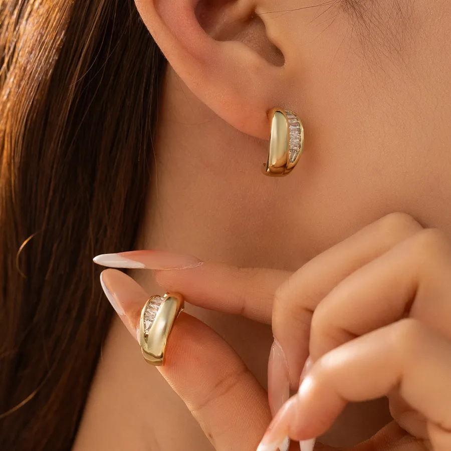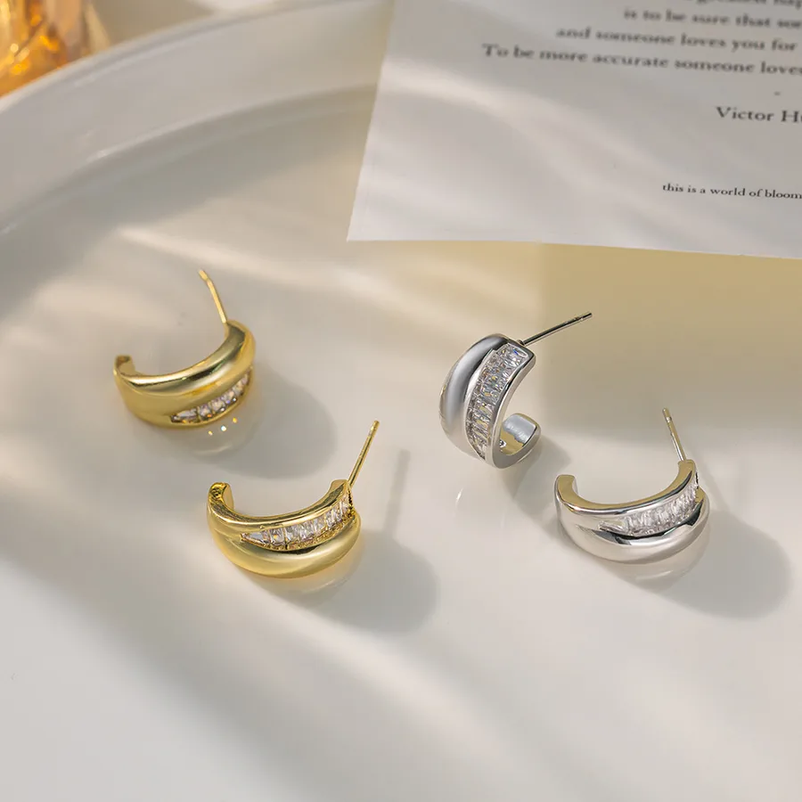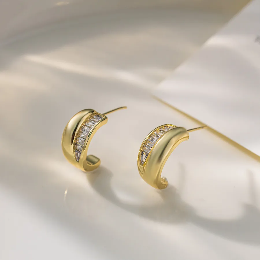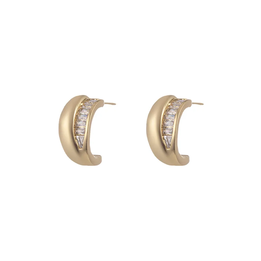 Semicircle Stud Earrings for Women in Copper with Zircon Inlay, Available in Golden