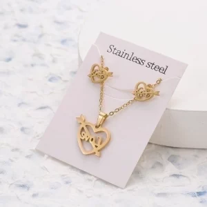 Stainless Steel Arrow Love Earrings Necklace Set