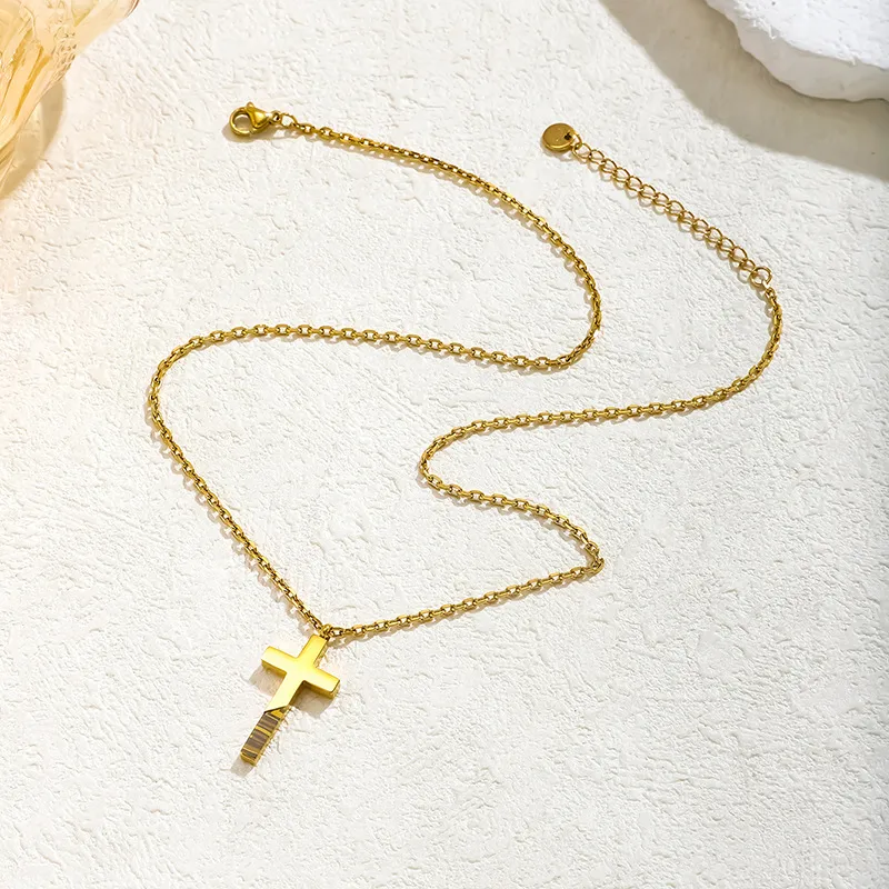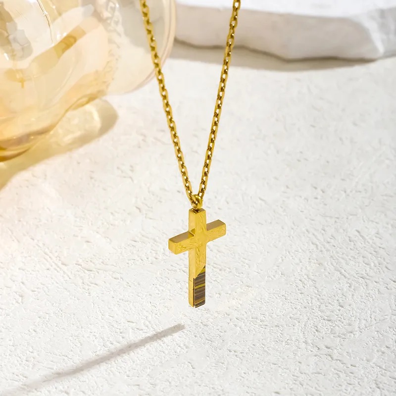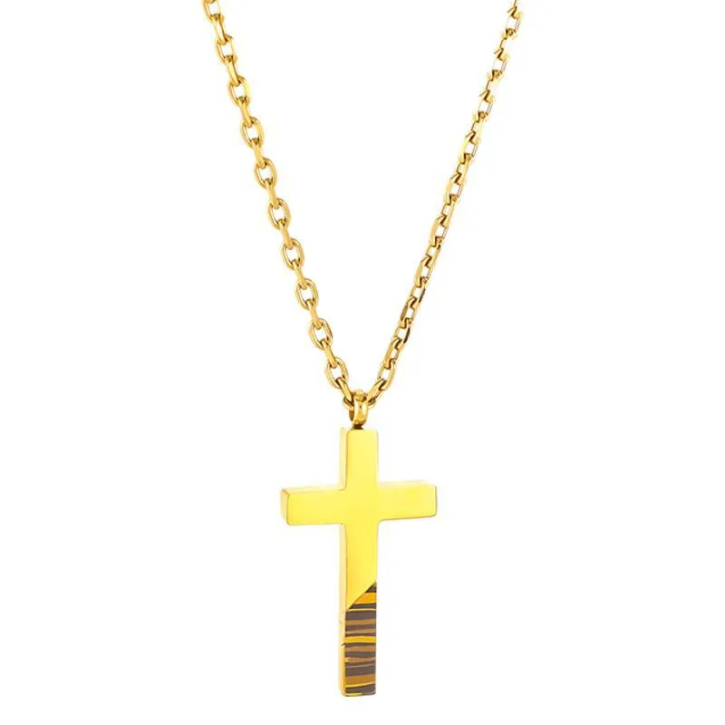 Simple Style Cross Pendant Necklace For Everyday Wear, Made of Durable Titanium Steel with Leopard Print Cable Chain
