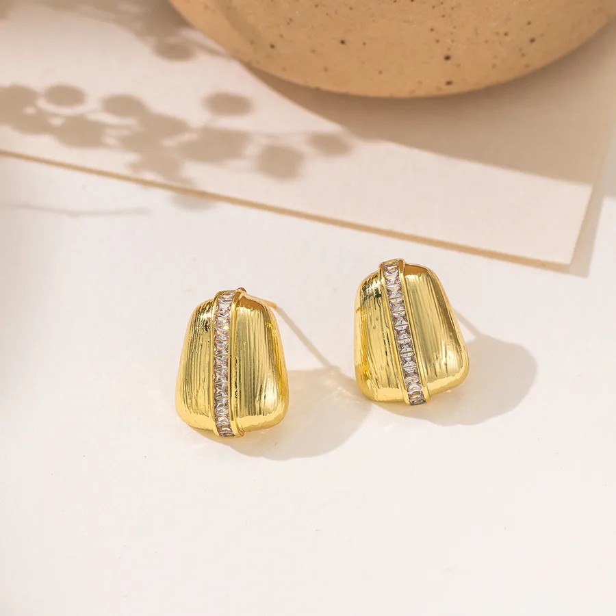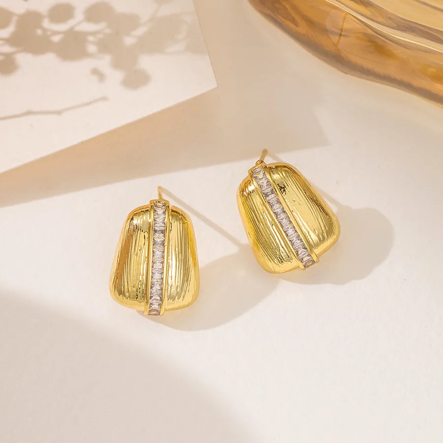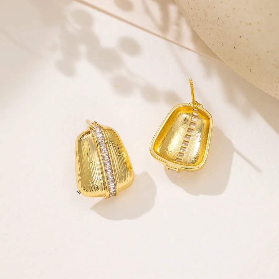 Home » Shop » Square Stud Earrings for Women in Copper with Zircon Inlay Featuring Bezel Setting